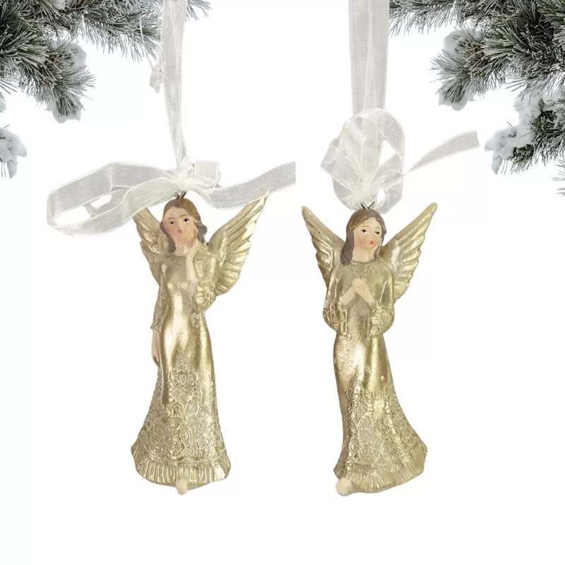 1db Kerámia angyalka akasztható arany színű ruhában (2 féle)
