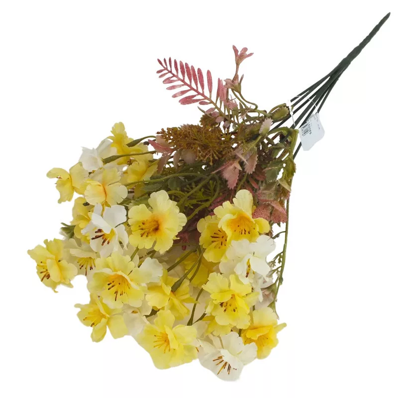 Az 7 ágú virágos csokor gyönyörű, finom, elegáns megjelenésű selyemvirág, ami bármilyen dekorációban megállja a helyét. A szárak formázhatók a bennük található fém drótnak köszönhetően, így könnyedén igazíthatod a virágokat az elképzeléseidhez.