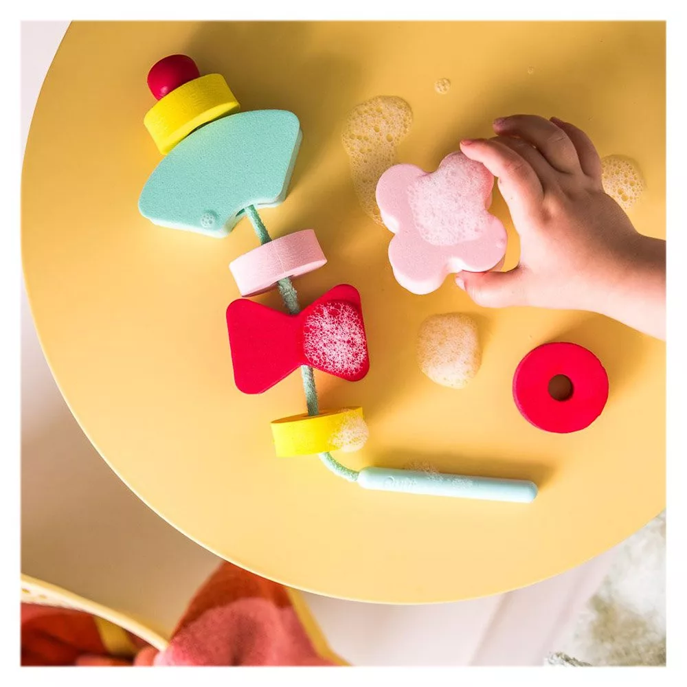 • A készlet tartalma: 7 darab habszivacs forma, szilikon végű madzag és tapadókorong.