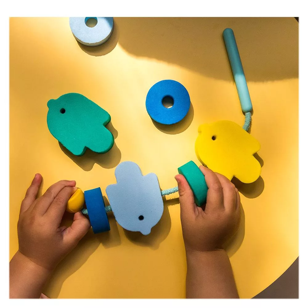 • Nagy formájuknak és méretüknek köszönhetően könnyen felfűzhetők a mellékelt zsinórra, így tökéletesek a gyermekek kis kezéhez.