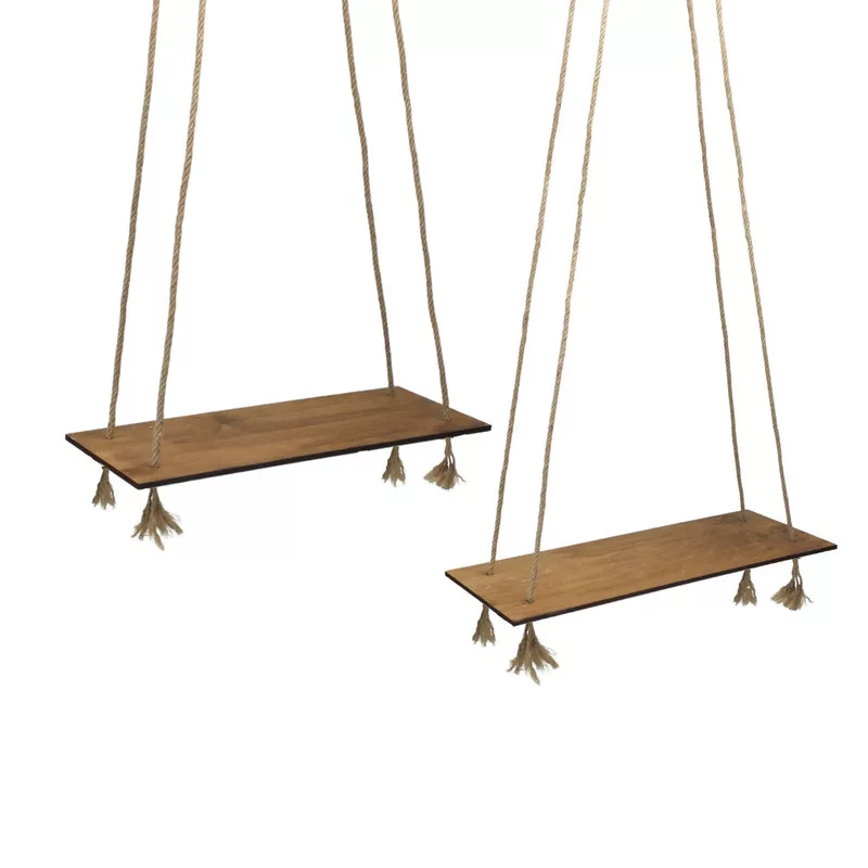 Fedezd fel a természetes és hangulatos stílusú natúr fából készült dekorációs hintáinkat, amelyek tökéletesen illeszkednek otthonodba vagy kertedbe vagy kirakatba és bemutatóterembe. A kötelek a falapok négy pontján illeszkednek, így stabilan és biztonságosan függenek a falon. A hintákhoz tartozó kötéllel könnyedén rögzítheted őket, és szabályozhatod a magasságukat, hogy tökéletesen illeszkedjenek az adott térhez és dizájnhoz. Használd őket a nappaliban, hálószobában vagy akár a teraszon vagy kertben, hogy egyedi és lenyűgöző központi elemeket teremtsenek.