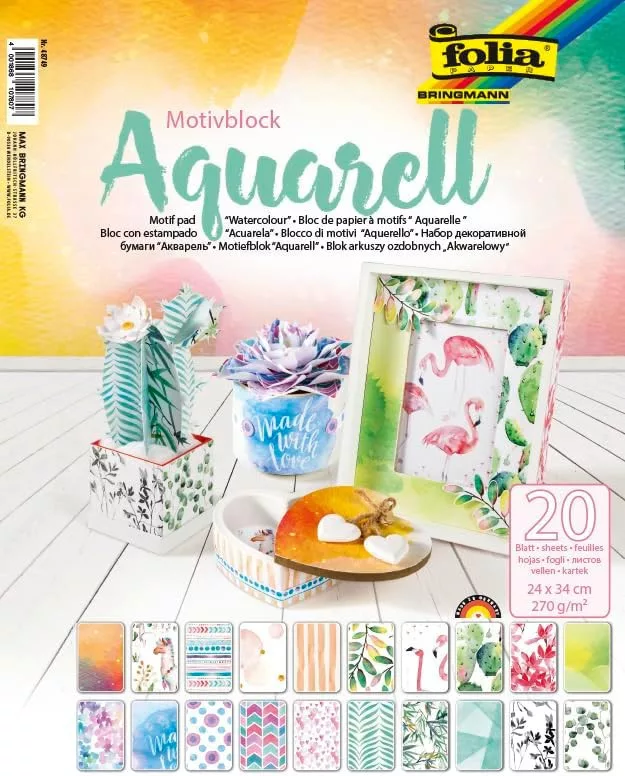 Dekorációs papír készlet (akvarell) 270g, 24x34cm, 20 ív/csg, vegyes - Folia