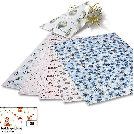Karácsonyi, mackó mintás dekorkarton, tökéletes ajándékcsomagoláshoz, ünnepi dekorációkhoz. – ünnepi, elegáns fényhatás ezüst és kék árnyalatokkal – tartós, könnyen hajtogatható – ideális karácsonyi projektekhez