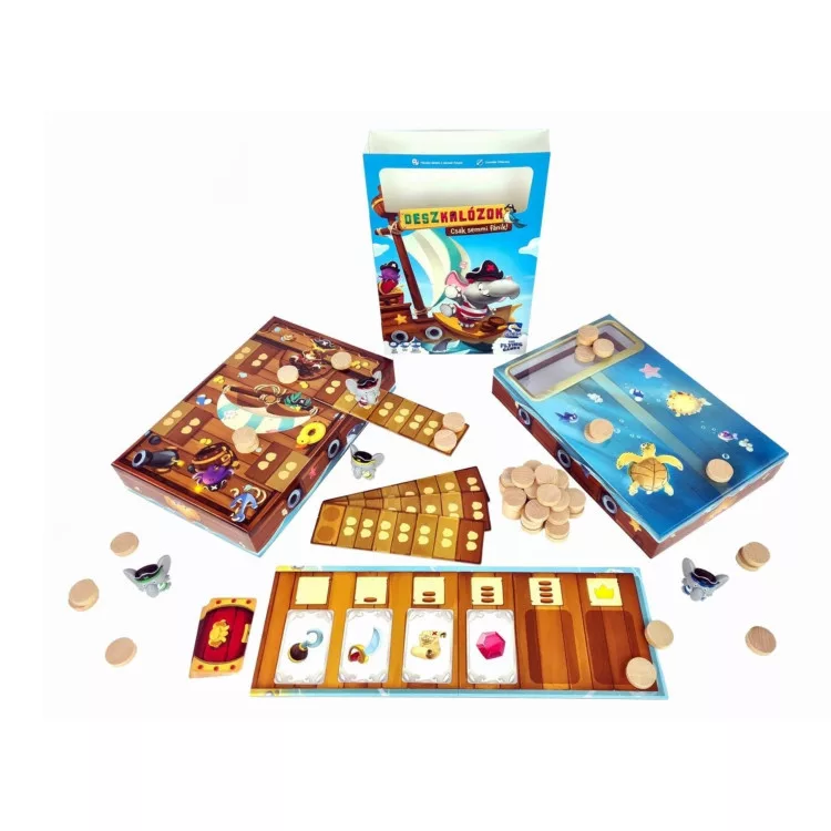 A Deszkalózok – Csak semmi fánik! kedves kockázatvállalós társasjáték gyerekeknek (is). A játékosok kincskártyákat húznak – amíg csak mernek! Ha nem túl mohók, ládákat pakolhatnak ellenfeleik (mágneses) pallóira, hátha vízbe pottyannak!