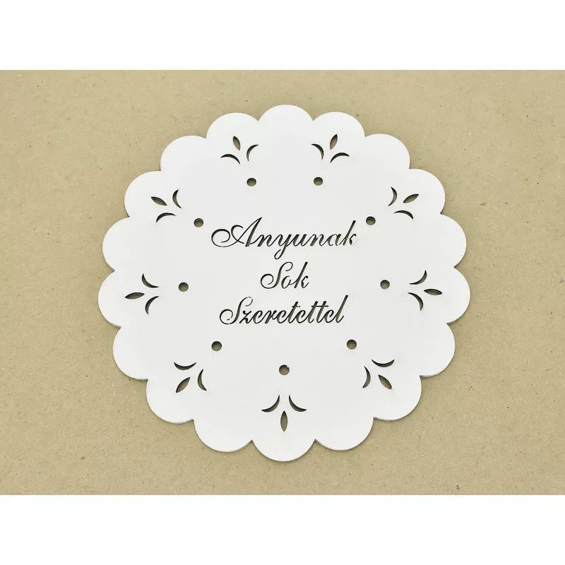 Díszes "Anyunak sok szeretettel" tábla koszorúra fehér 18cm