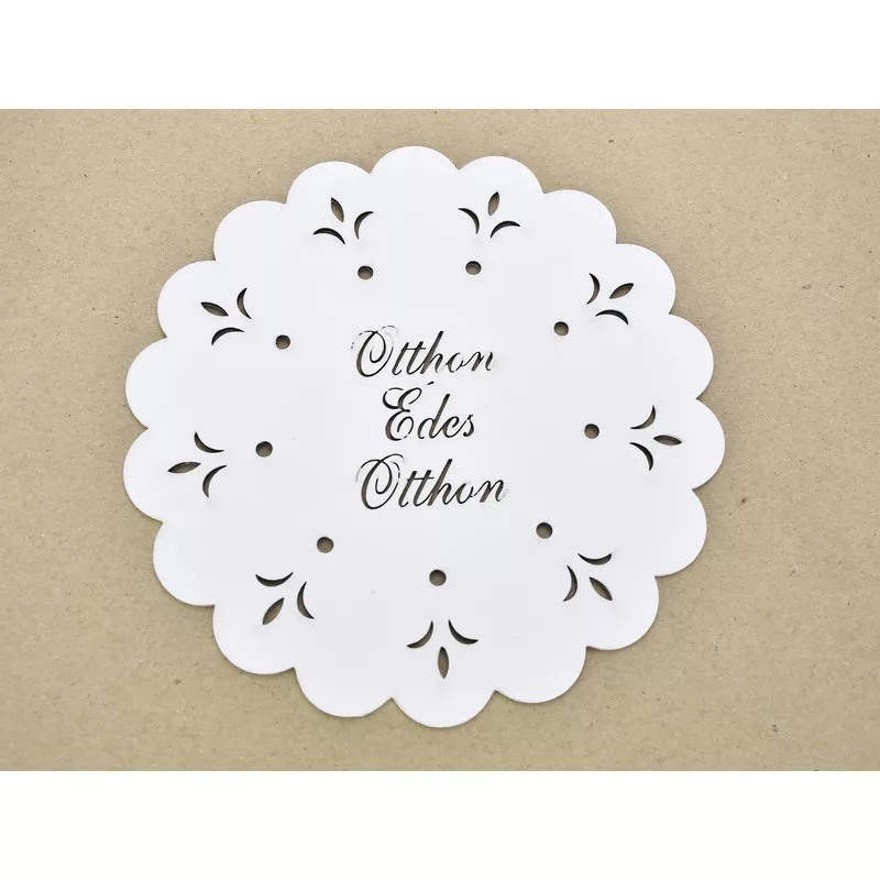 Díszes "Otthon Édes Otthon" tábla koszorúra fehér 18cm