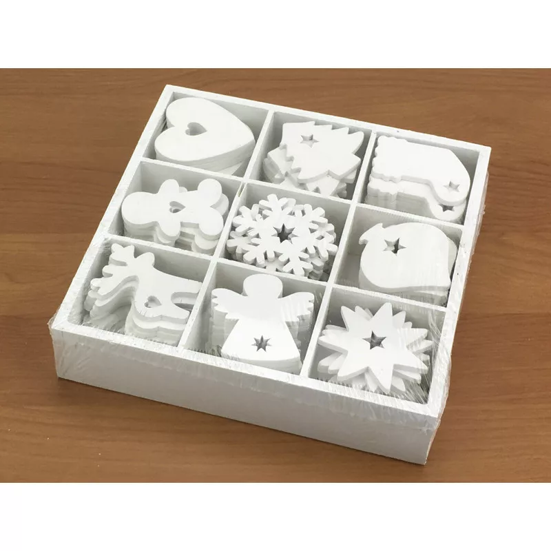 Dobozos karácsonyi díszek fehér 90db/doboz
