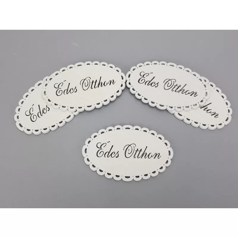 "Édes otthon" csipkés ovál tábla fehér 5db/csomag