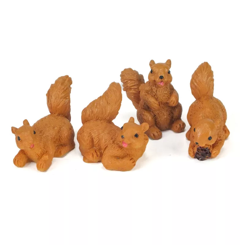 4db Kis méretű polirezin mókusok a tavasztól-őszig tartó szezon dekorációihoz.
