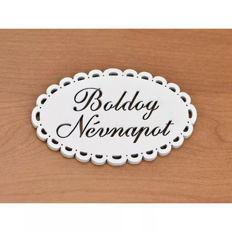 Fa - "Boldog Névnapot" csipkés ovál tábla fehér