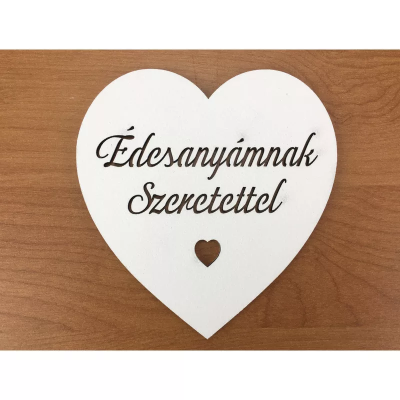 Fa - "Édesanyámnak Szeretettel" szív fehér 10cm