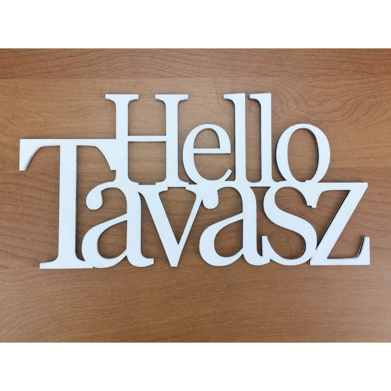 Fa - "Hello Tavasz" felirat koszorúra fehér 10x20cm