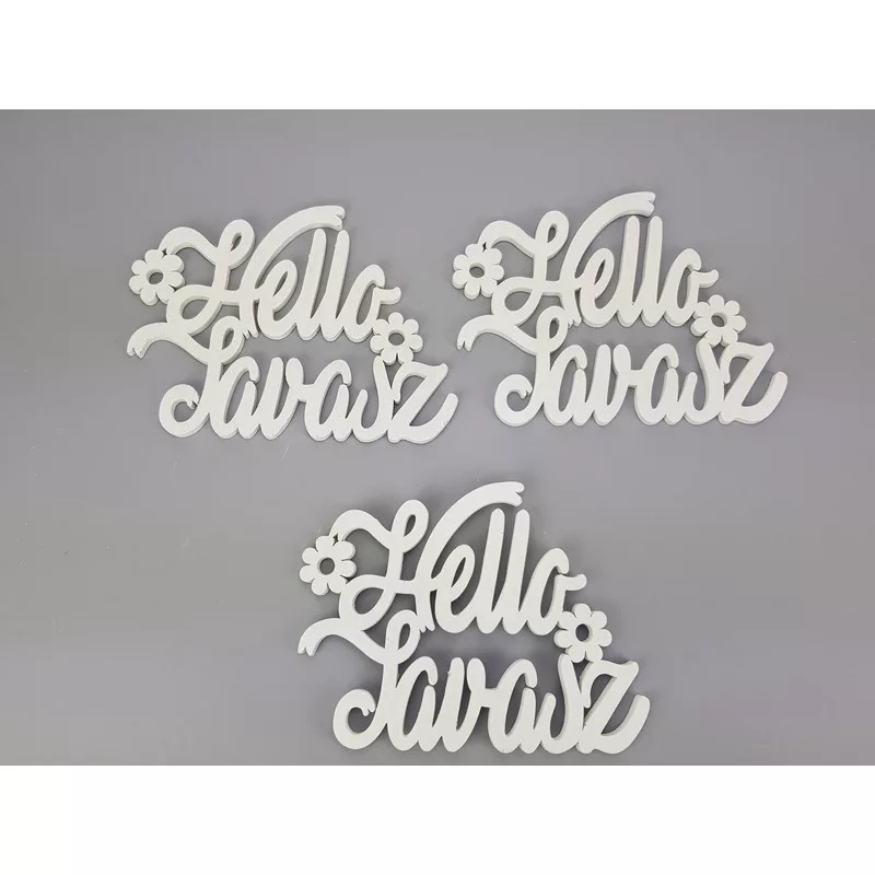 Fa "Hello Tavasz" felirat koszorúra fehér 14,5x20cm 3db/csomag