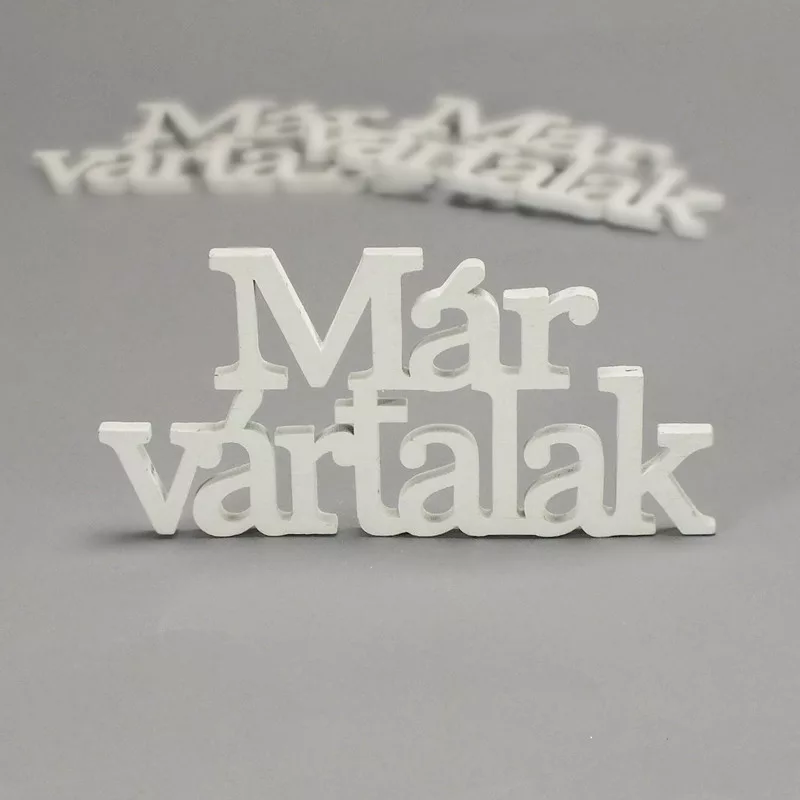Fa "Már vártalak" felirat koszorúra fehér 7x14cm 3db/csomag