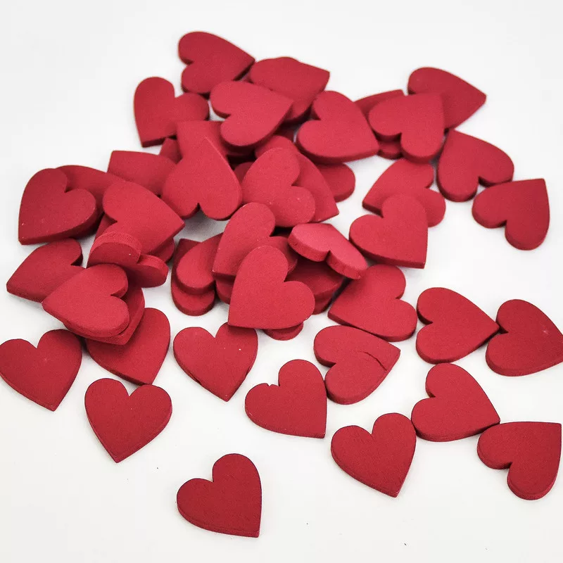 Fából készült piros szívek. 2cm, vastagság:3 mm