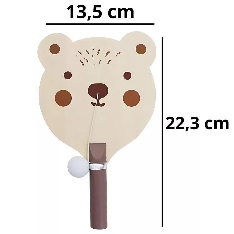 Ez a maci formájú, fából készült ügyességi játék kiváló bevezetést nyújt a fiatal korosztály számára az ügyességi és koordinációs játékok izgalmas világába. A játék célja, hogy a gyerekek ütővel üssék meg a labdát, amely egy kötélen lóg, és próbálják minél tovább a levegőben tartani. Ez a tevékenység nemcsak szórakoztató, hanem kiválóan fejleszti a gyerekek szem-kéz koordinációját és reakcióidejét.