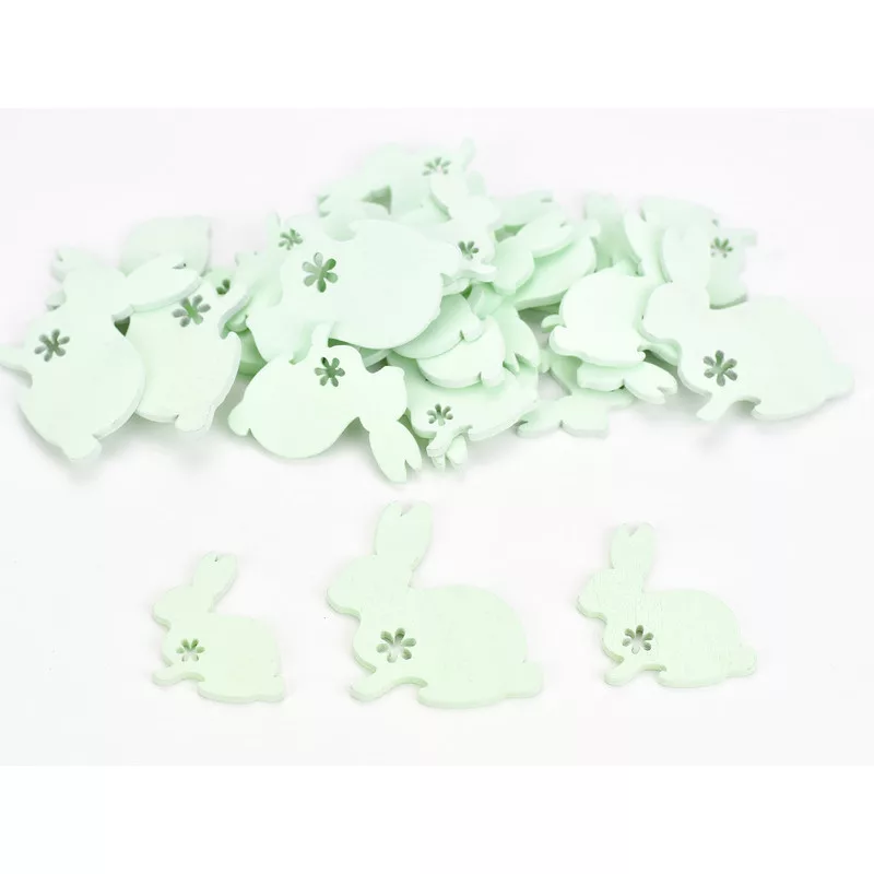 Menta színű virág mintás nyulak, vegyes méretekben húsvéti dekoráció megalkotásához.