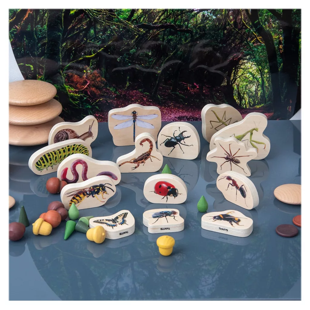 • Fedezd fel a rovarok és hüllők lenyűgöző világát a valósághű képekkel ellátott fahasábkészlettel!