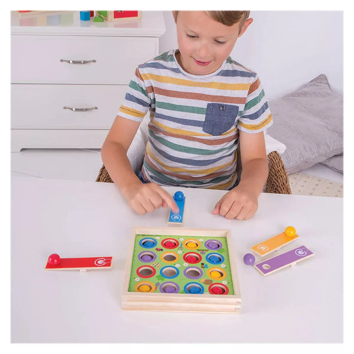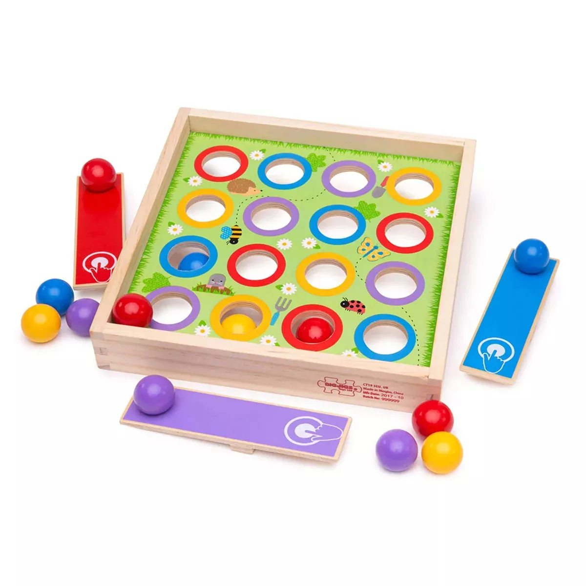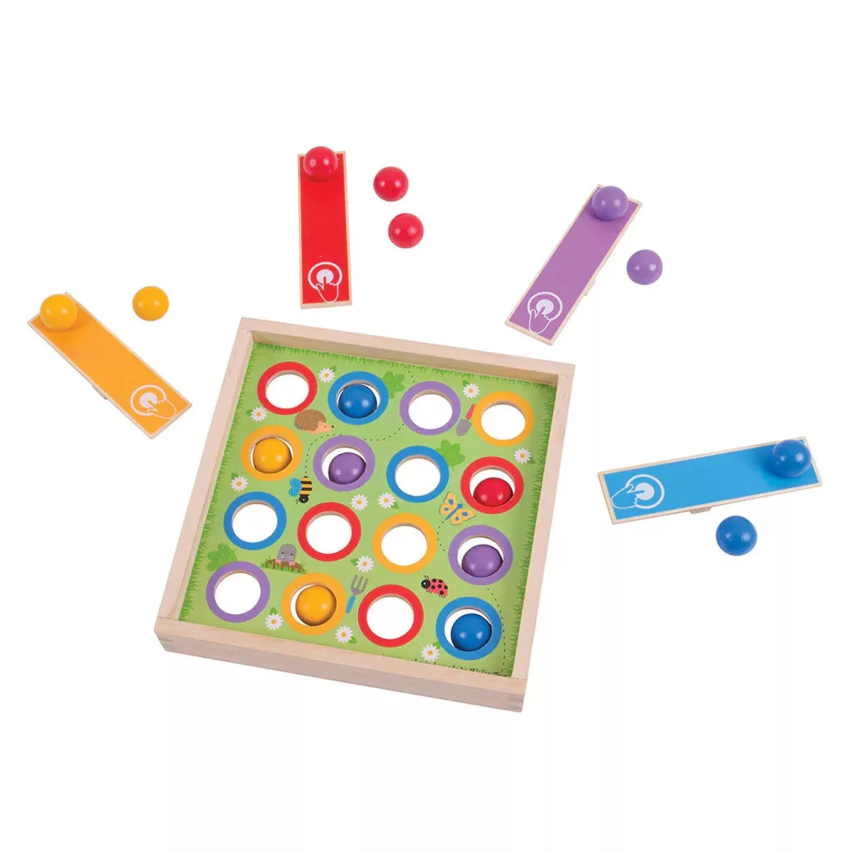 A golyók pontos bepattintása fejleszti a kézügyességet és a szem-kéz koordinációt.