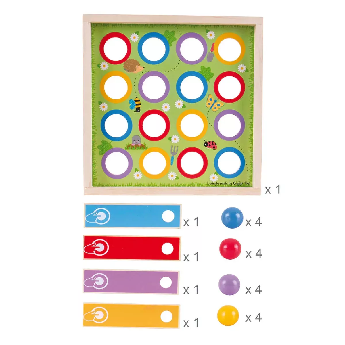 A játék könnyen megtanulható: a játékosok felváltva próbálják a színes golyókat a megfelelő lyukakba pattintani.