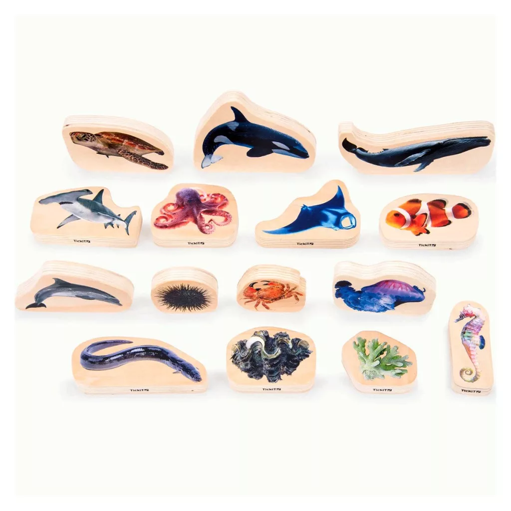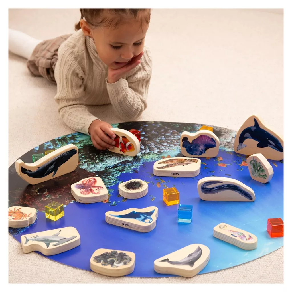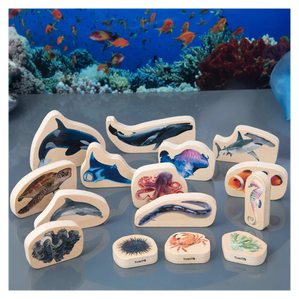 • Fedezd fel a tengeri élőlények lenyűgöző világát a valósághű képekkel ellátott fatömbkészlettel!