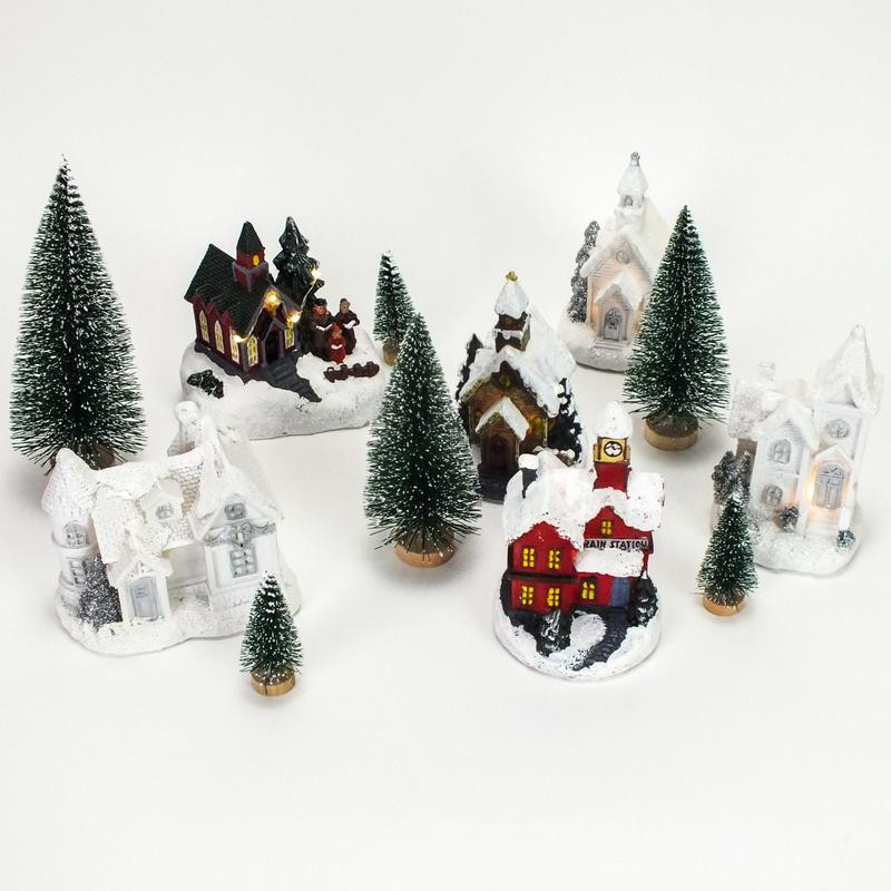Fehér-ezüst világítós templom kicsi 12db/dob - OKOS ÁR!