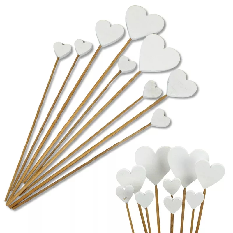 Fehér fa szívek beszúrható vegyes 9db/csomag