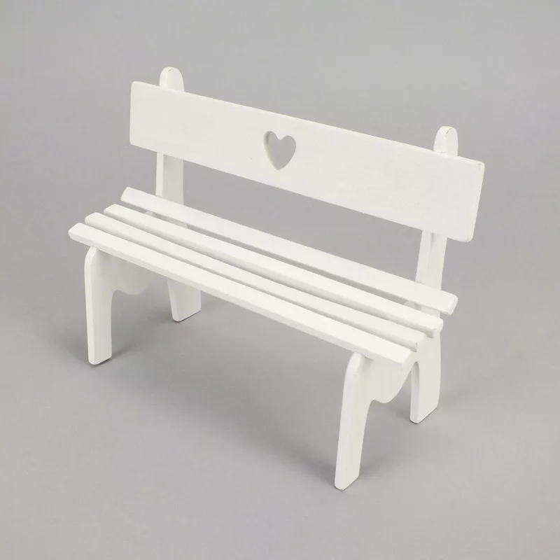 Fehér fa pad, szív mintával. Kisebb-nagyobb dekorációk kiegészítője.