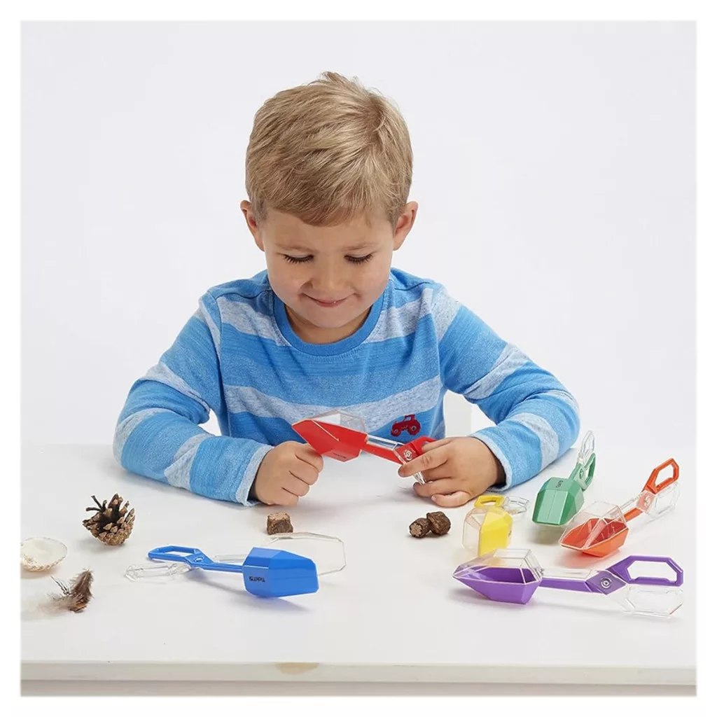 • A fogónak tökéletes mérete van a gyerekek kis kezéhez, és könnyen használható különféle természetből származó anyagok megfogására, emelésére és megtartására. A műanyag fogók színes és átlátszó karral rendelkeznek.