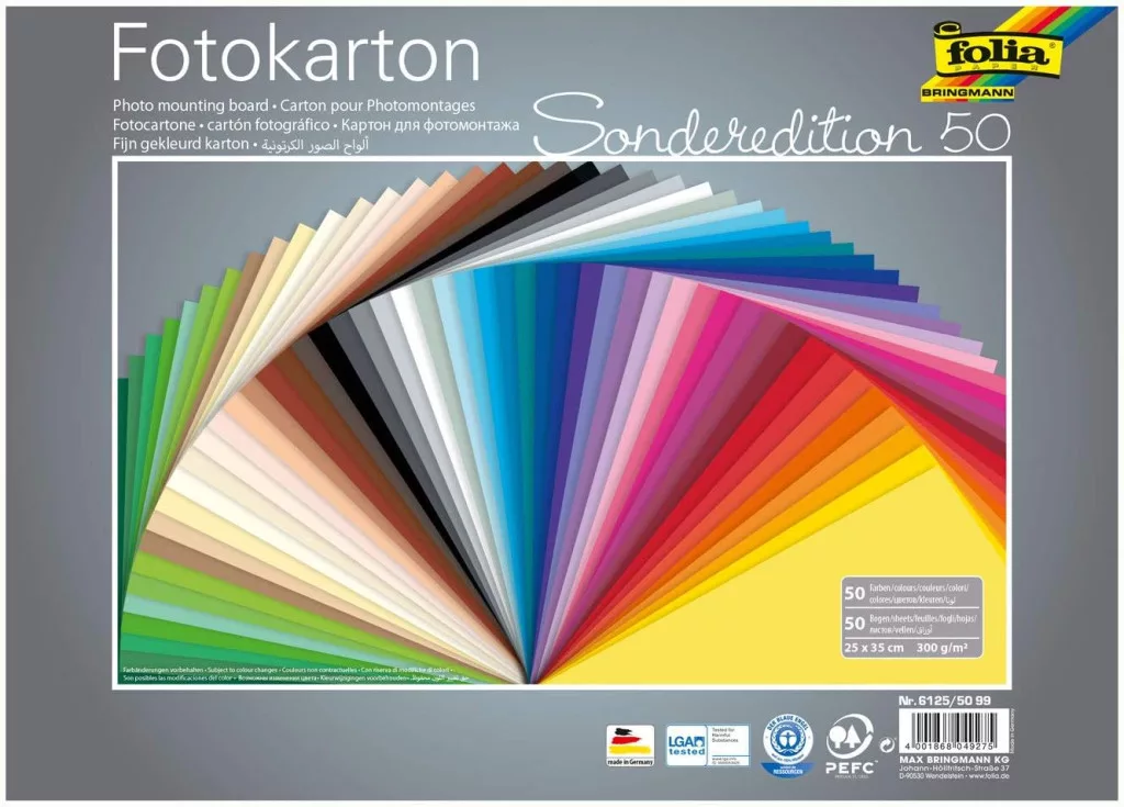 Fotókarton, 300g, 25x35cm, 50 ív/csg, vegyes színek - Folia
