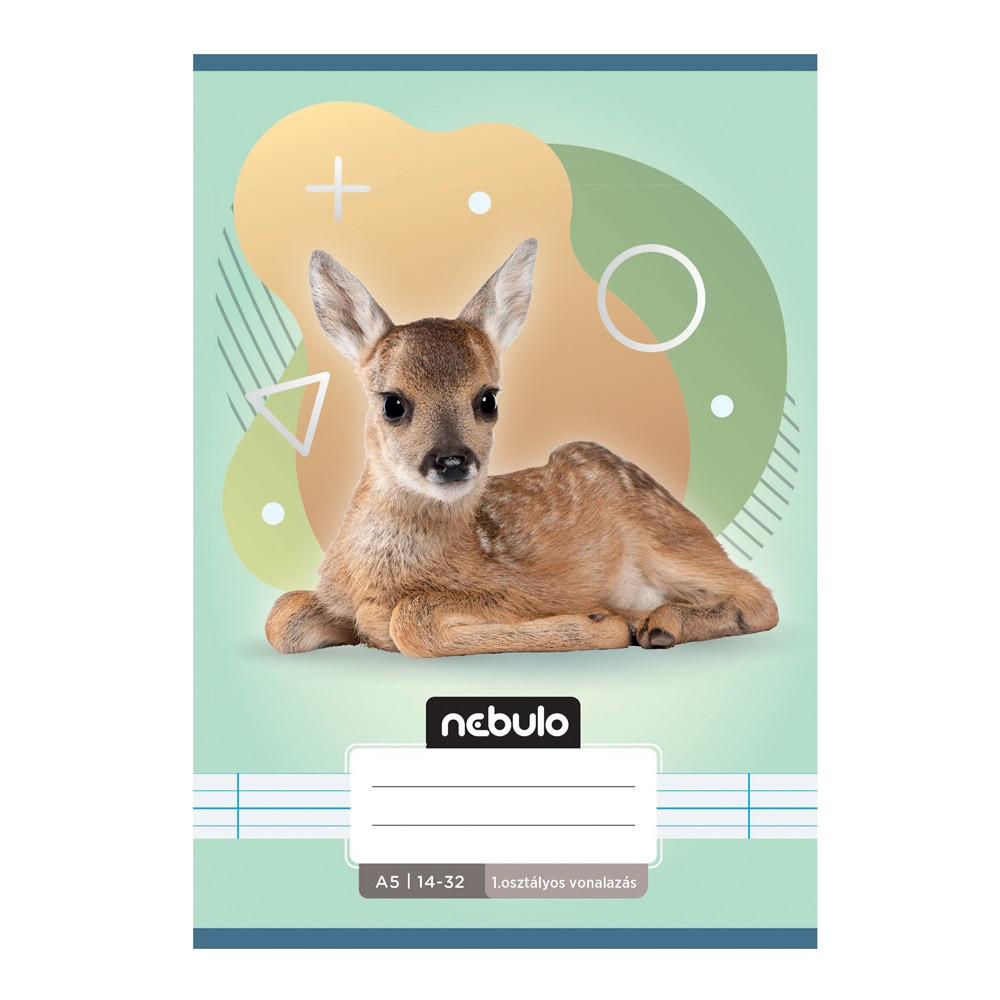 Füzet, A5, 1. osztályos vonalas, 14-32, Állatos minták, 16 db/csomag Nebulo