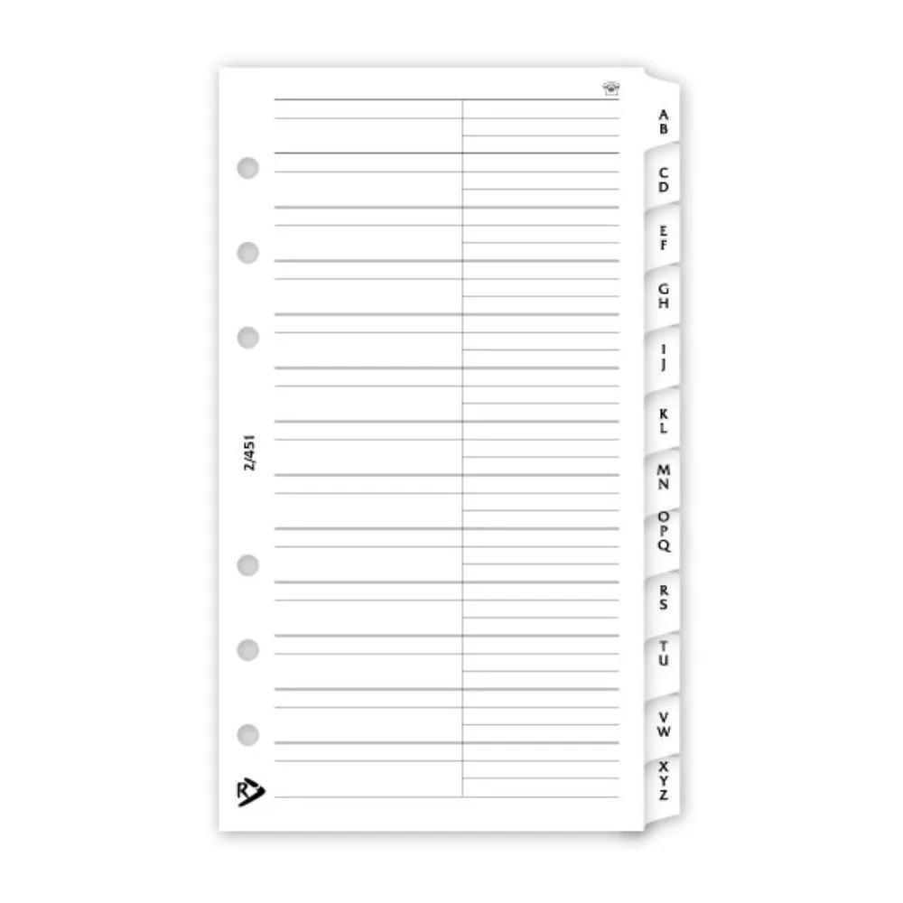 Gyűrűs kalendárium utántöltő csomag  2/451 fehér papíros telefon regiszter M mérethez Realsystem