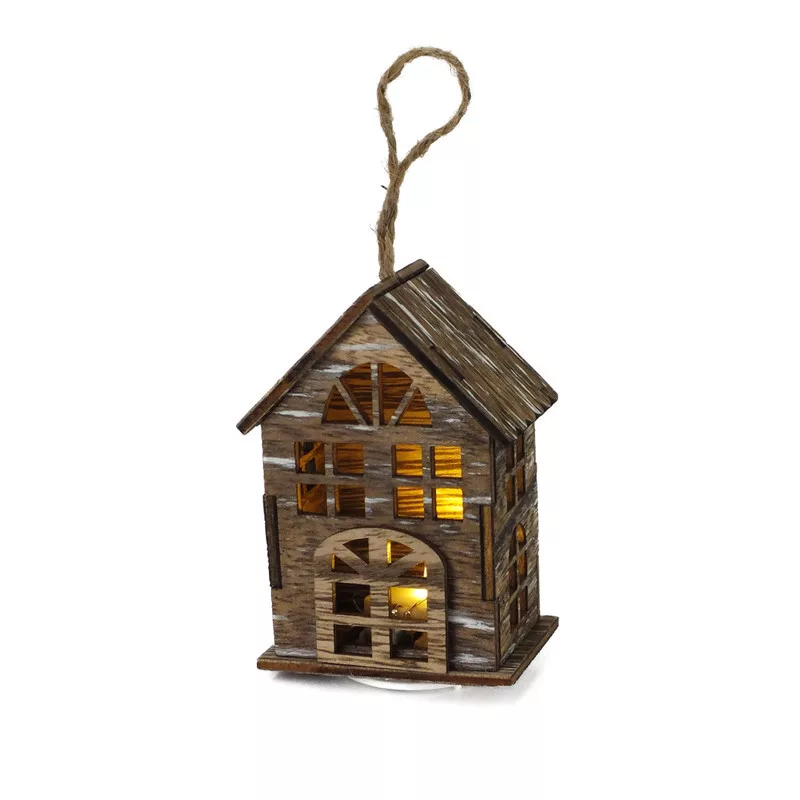 Mini, világítós faház akasztóval, ajtó- és asztaldíszbe vagy karácsonyfára.