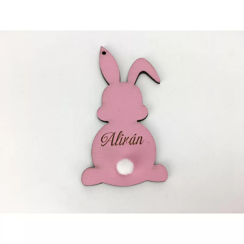 Húsvéti nyuszi egyedi gravírral málna 8,4x4,6 cm