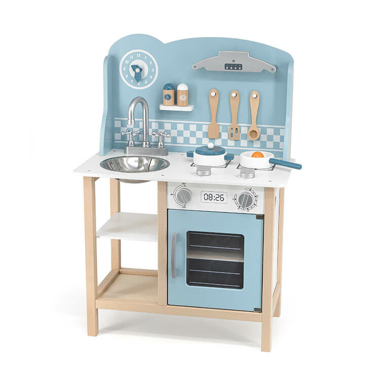 Játékkonyha (kék) – PolarB fa játékkonyha kis szakácsoknak