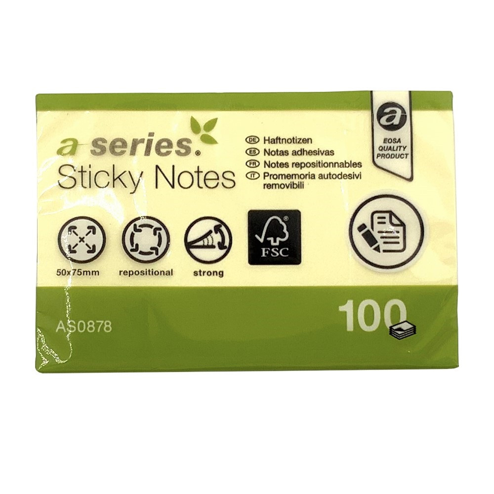 Jegyzettömb öntapadó 50x75mm 100lap A-Series sárga