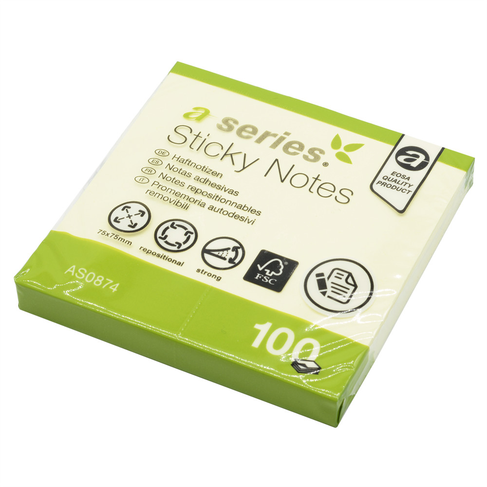 Jegyzettömb öntapadó, 75x75mm, 100lap, A-Series, sárga