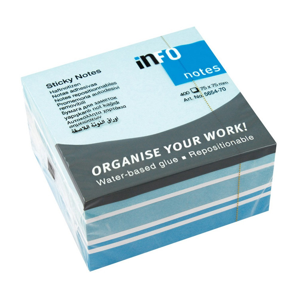 Jegyzettömb öntapadó, 75x75mm, 400lap,5654-70 Info Notes pasztell színek fehér,kék, türkiz