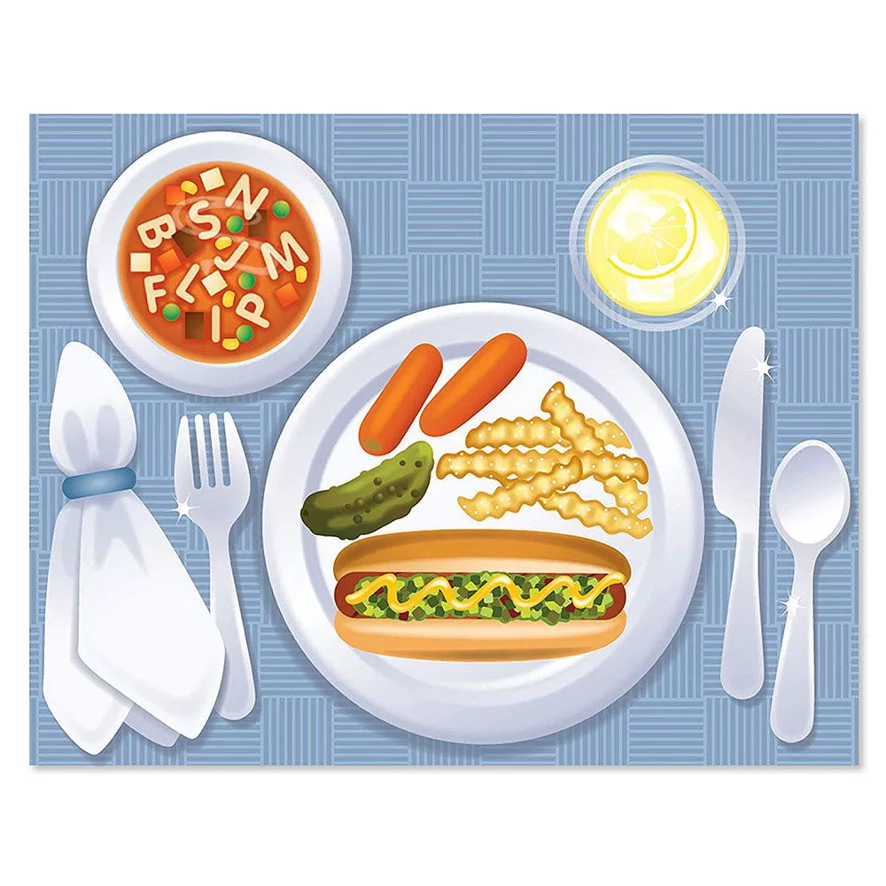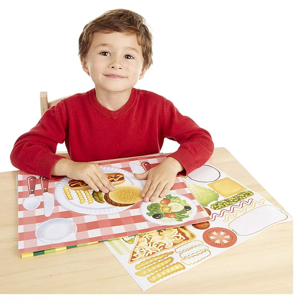 • A készlet 225 ételt és italt ábrázoló matricát tartalmaz, köztük öt ételcsoportot, így a kicsik könnyedén kombinálhatják őket, hogy változatos és kiegyensúlyozott ételt készítsenek.