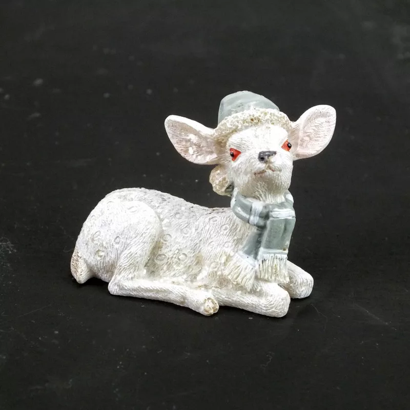 Kerámia glitteres fekvő fehér őzike sapkában 2 féle