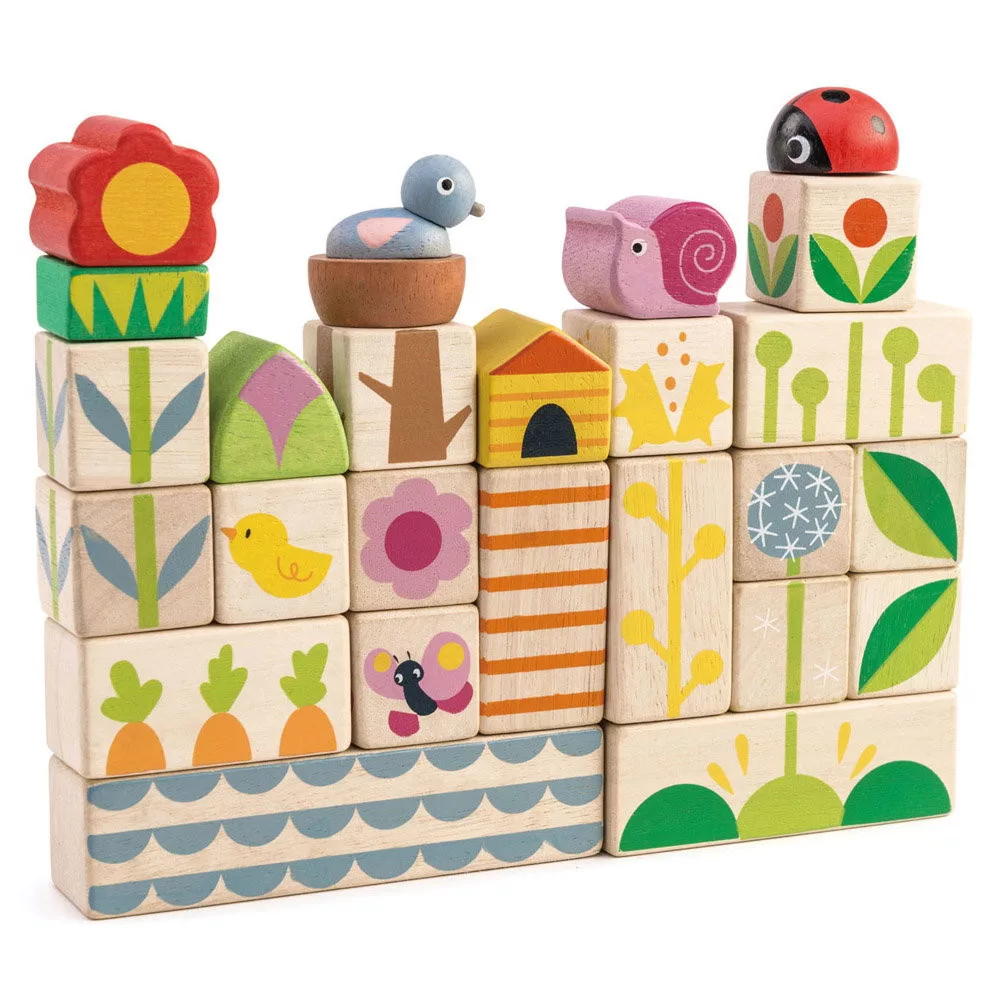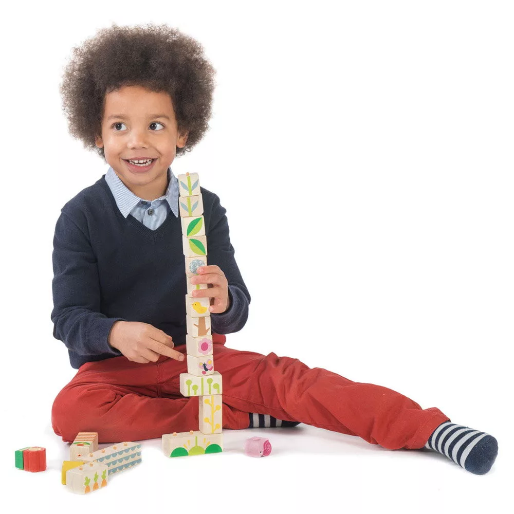 • A 24 darabos fa építőkocka-készlet vidám, természet ihlette illusztrációkkal és innovatív illesztőrendszerrel készült, amely lehetővé teszi a kockák stabil összekapcsolását.
