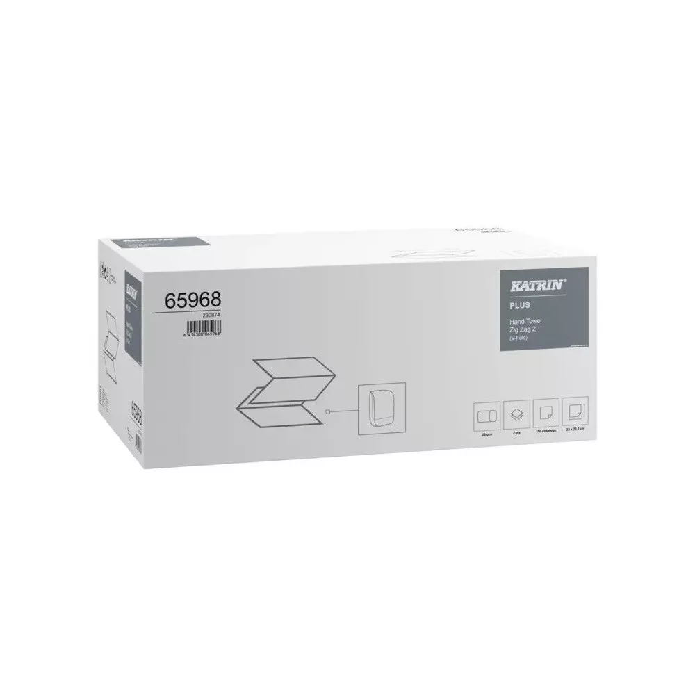 KÉZTÖRLŐ 2 RÉTEGŰ V HAJTOGATÁSÚ 150 LAP/CS 20 CSOMAG/KARTON KATRIN PLUS ZIG ZAG 2_65968 HÓFEHÉR