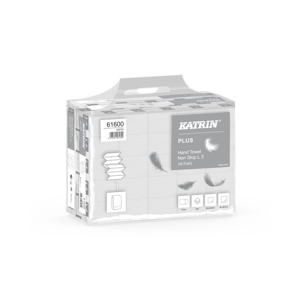 KÉZTÖRLŐ W HAJTOGATÁSÚ 3 RÉTEGŰ 90 LAP/CS 25 CSOMAG/KARTON KATRIN PLUS NON STOP L3 HÓFEHÉR_61600
