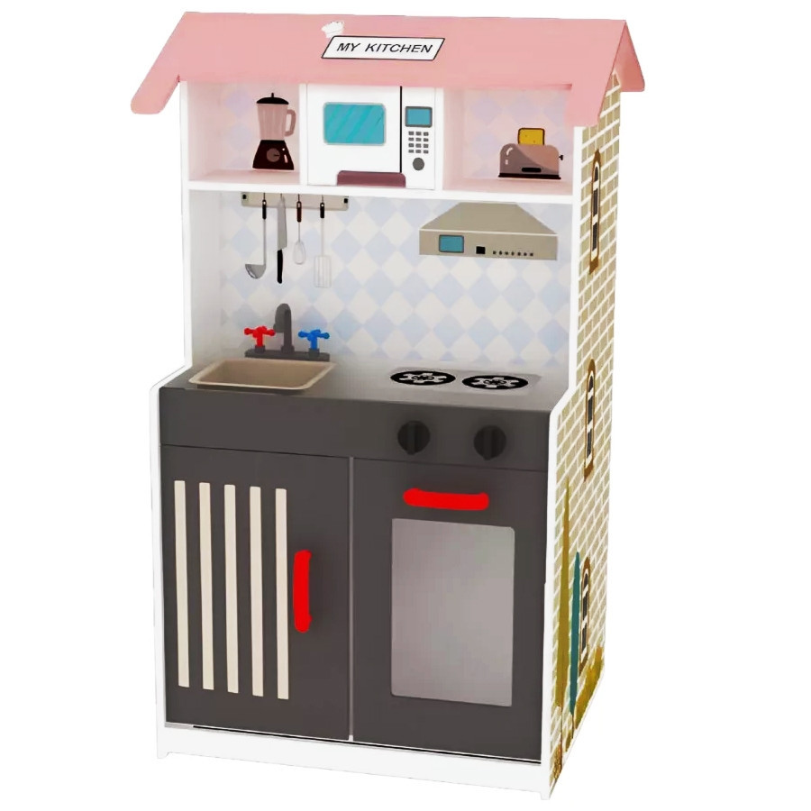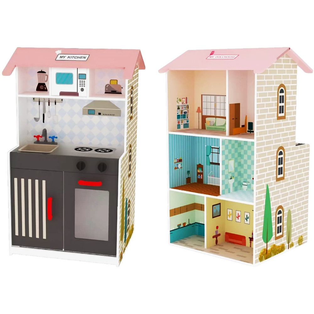 Ez a kétoldalú konyha és babaház egyszerre több fontos igényt is kiszolgál: helyet spórol a háztartásban vagy az óvodai csoportszobában, miközben lehetővé teszi, hogy több gyermek is egy időben, egymással együttműködve játsszon. Az egyik oldalon egy valósághű játékkonyha, a másikon egy 6 helyiségre osztott babaház várja a kis szakácsokat és a kis házigazdákat.