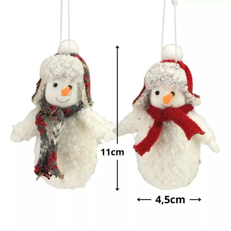 Bolyhos, puha tapintású sapkás hóember figura (2 fajta), akasztóval ellátva. Aranyos dekoráció az otthonodba illetve karácsonyfadísznek.
