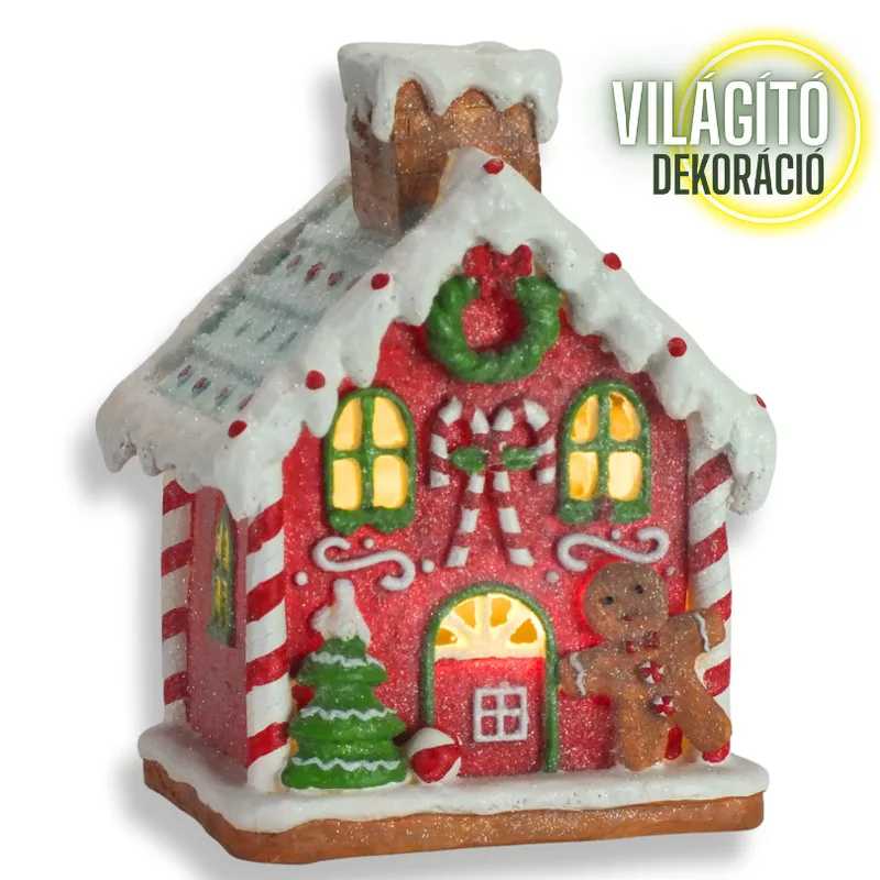 Varázsolj ünnepi hangulatot otthonodba ezzel a mézeskalács házikóval! A kéményes dekoráció és a meleg fények életre keltik a karácsonyi hangulatot, miközben a házikó zenélő funkciója még különlegesebbé teszi a díszt. Ideális asztali vagy polcos dekoráció, amely minden beltéri teret ünnepivé varázsol.