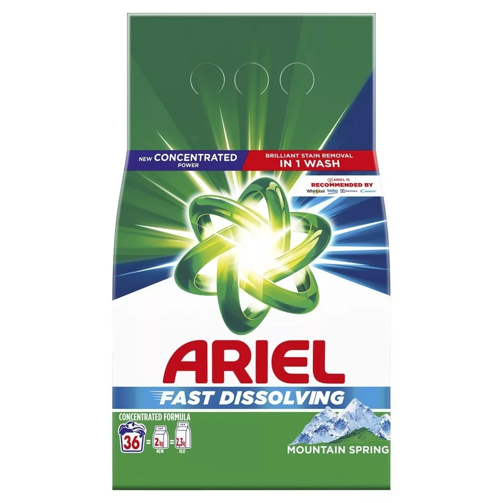 Ariel Mountain Spring mosópor Az Anti-residue technológiának köszönhetően az Ariel alacsonyabb hőfokú mosóprogramoknál is ragyogó tisztaságot eredményez. Az innovatív AquaPuder formula vízzel érintkezve gyorsan feloldódik, azonnal aktiválódik, és mélyen a szövetrostokba hatolva kimagasló tisztaságot nyújt már alacsonyabb hőfokon is.