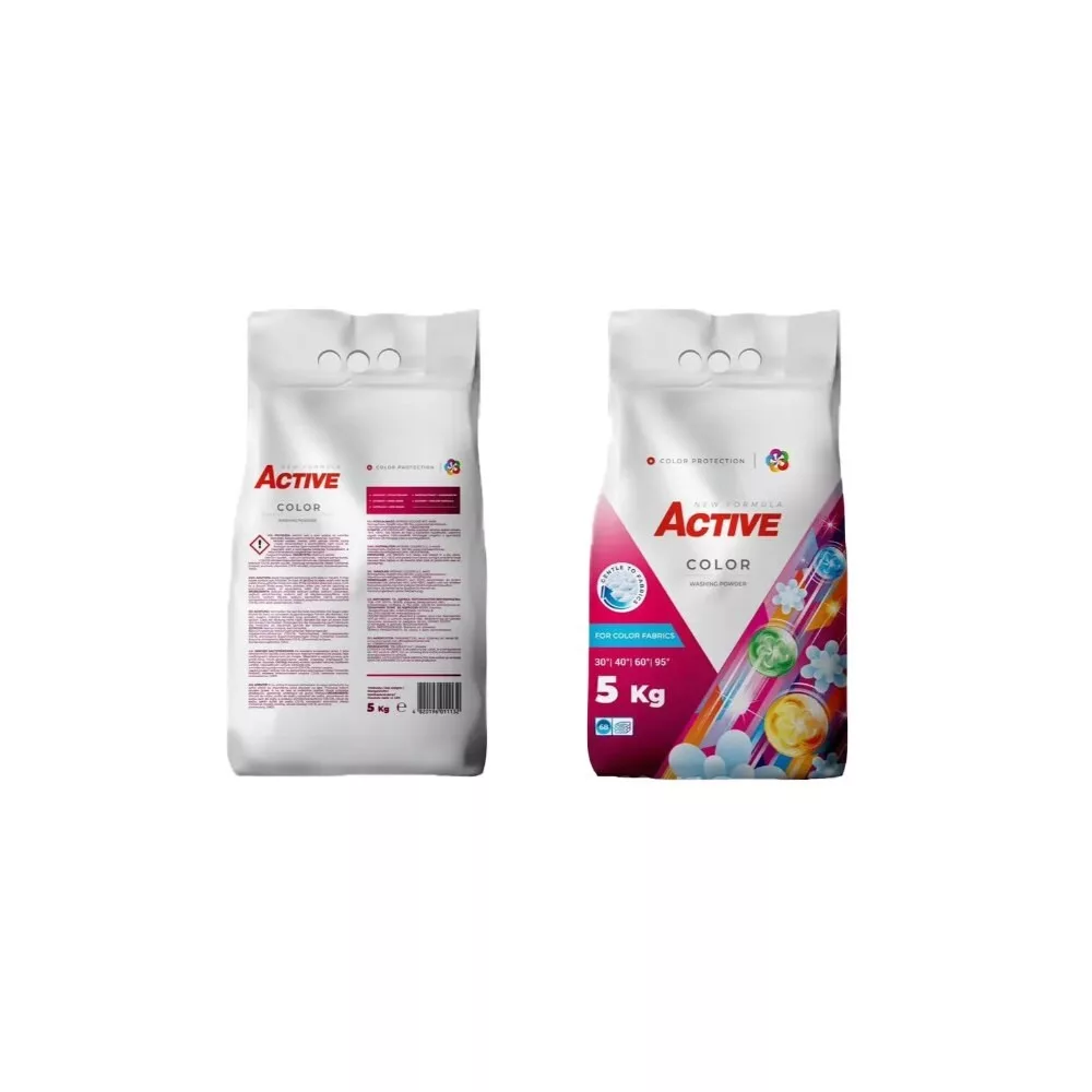 Active Color mosópor - színes ruhákhoz. Az Active Color mosópor olyan mosószer melyben megbízhat. Tökéletes mosási eredményt és higiénikus tisztaságot biztosít előkezelés nélkül is. Hatékonyan távolítja el a makacs szennyeződéseket úgy, hogy közben megőrzi ruhái élénk színét.