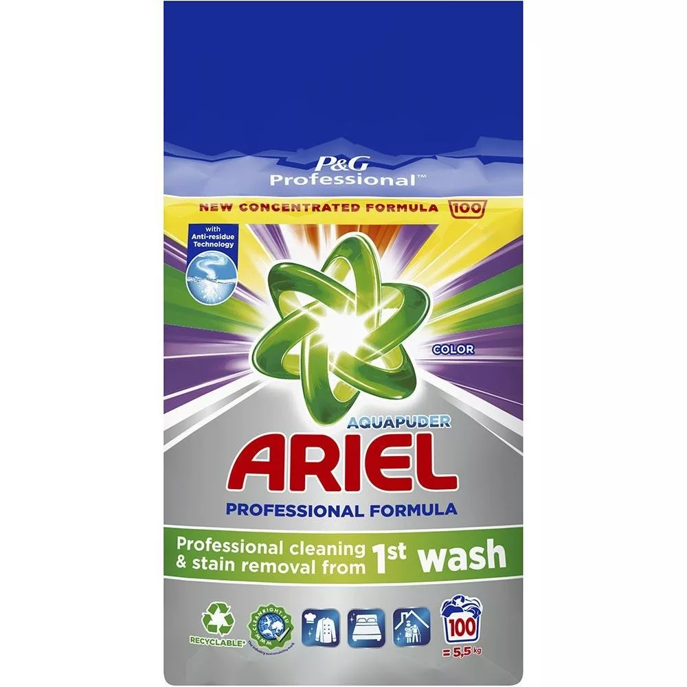 Az Ariel Professional Color mosópor egy professzionális minőségű termék, amelyet kifejezetten színes ruhák mosására fejlesztettek ki. A 5,5 kg-os kiszerelés  100 mosásra elegendő.Kiváló folteltávolítás: Már alacsony hőmérsékleten is hatékonyan távolítja el a foltokat.