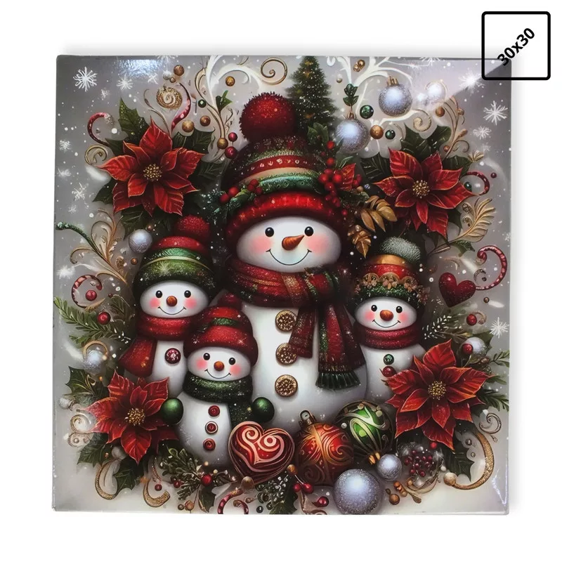 Műanyag négyszögletű tálca Hóember család 30x30cm
